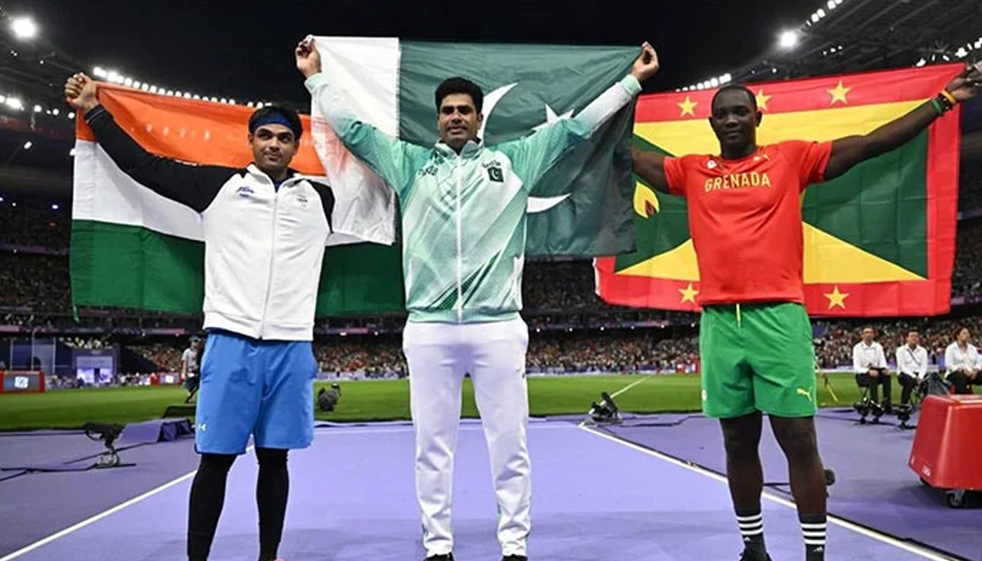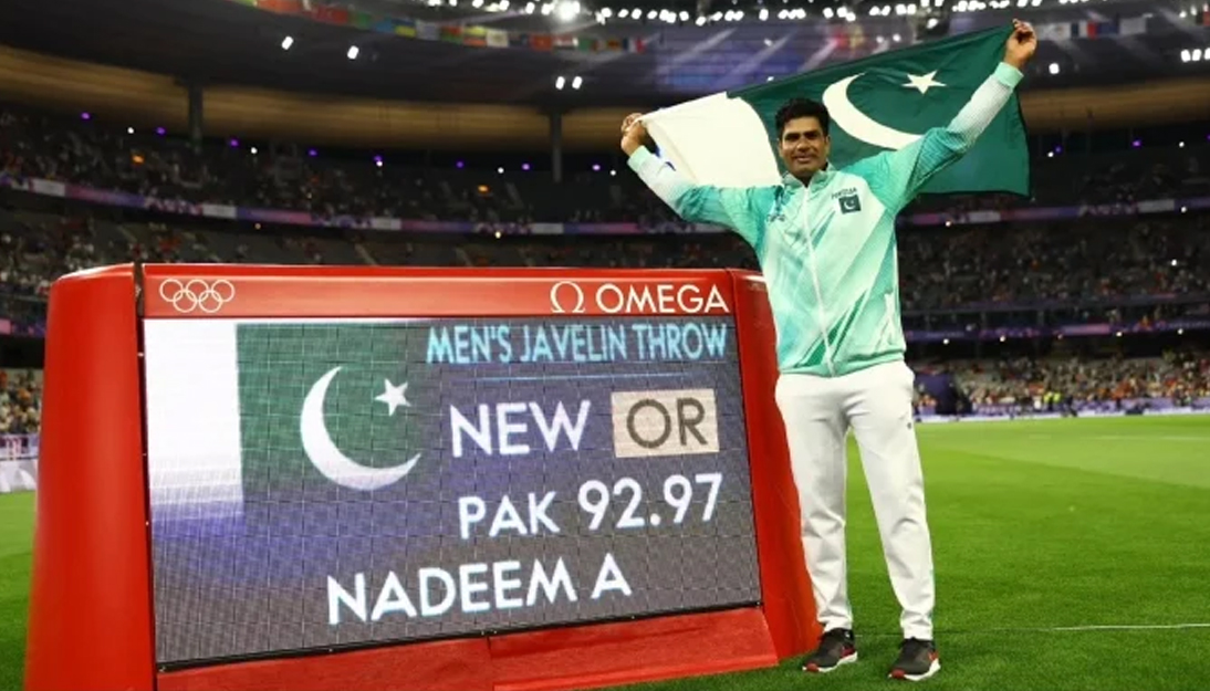 پیرس اولمپکس میں مینز جیولین تھرو ایونٹ کے فائنل میں ارشد ندیم نے92.97 میٹر کی تھرو کرکے نیا اولمپک ریکارڈ بناتے ہوئے پاکستان کو گولڈ میڈل جتوادیا۔
